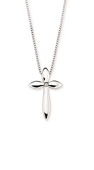 Diva Diamonds® Cross Pendant In Sterling Silver With .01 Ct. Diamond With 18" Box Chain (Adjustable To 16") And Lobster Claw Clasp