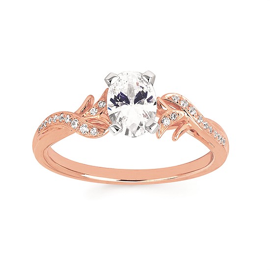 Engagement Ring Forever ElegantĀ® .08 Ctw. Diamond Semi Mount shown with 3/4 Ct. Oval Center Diamond in 14K Gold