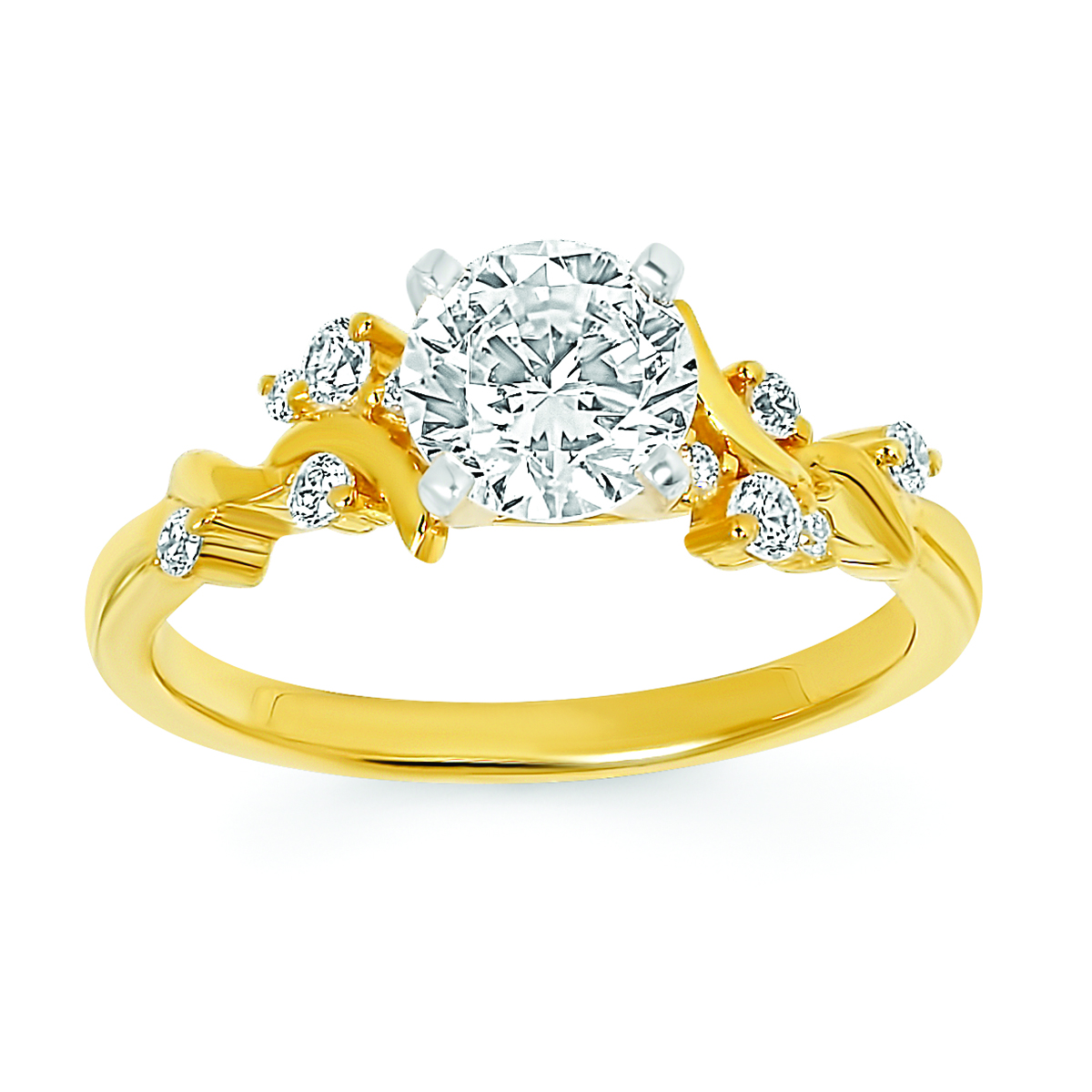 Engagement Ring Forever ElegantĀ® 1/6 Ctw. Diamond Semi Mount shown with 1 Ct. Round Center Diamond in 14K Gold
