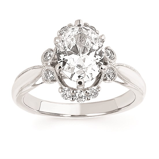 Engagement Ring Forever ElegantĀ® 1/4 Ctw. Diamond Semi Mount shown with 1 1/2 Ct. Oval Center Diamond in 14K Gold
