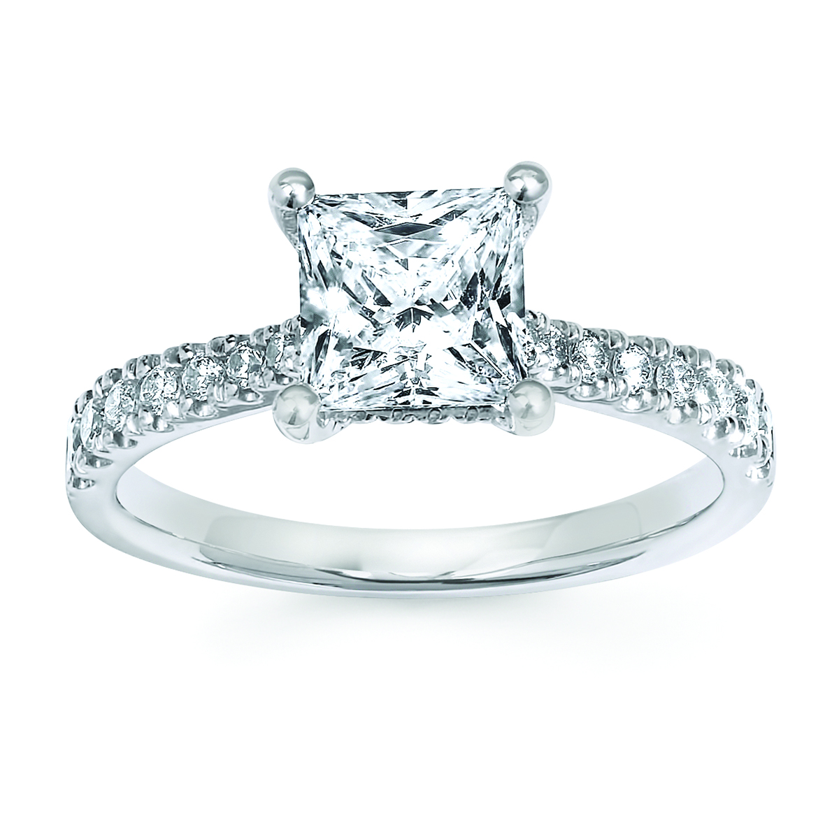 Engagement Ring Classic Bridal: 3/8 Ctw. Diamond Semi Mount shown with 1.5 Ct. Princess Center Diamond in 14K Gold