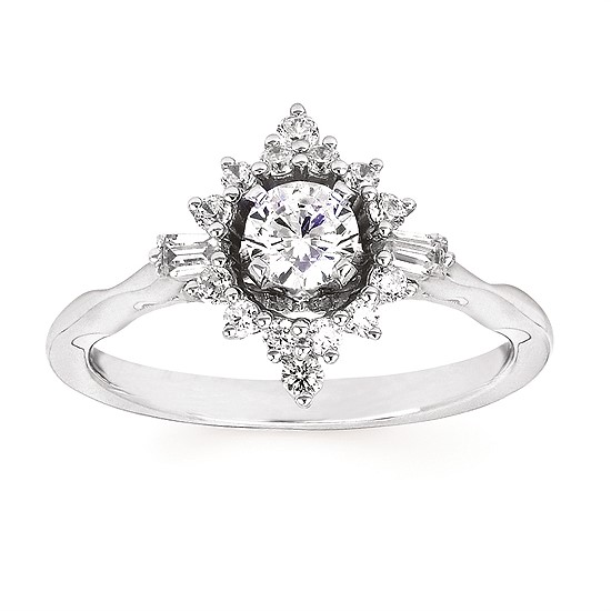 Engagement Ring Halo: 1/4 Ctw. Diamond Semi Mount shown with 1/3 Ct. Round Center Diamond in 14K Gold