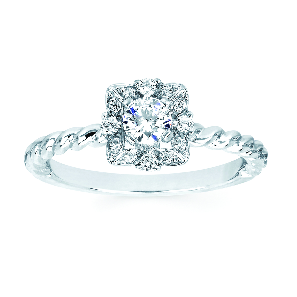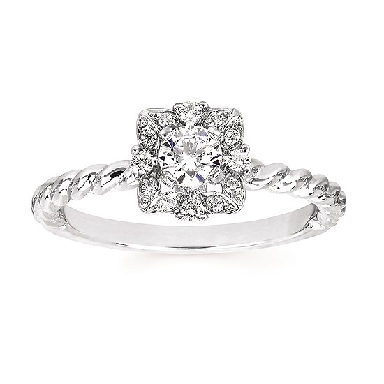 Engagement Ring Halo: 1/10 Ctw. Diamond Semi Mount shown with 1/4 Ct. Round Center Diamond in 14K Gold