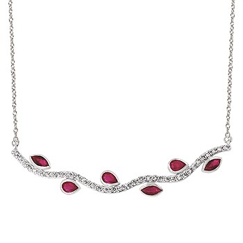 5/8 Tgw. Diamond & Ruby Leaf Pendant In 14K Gold With 18" Chain